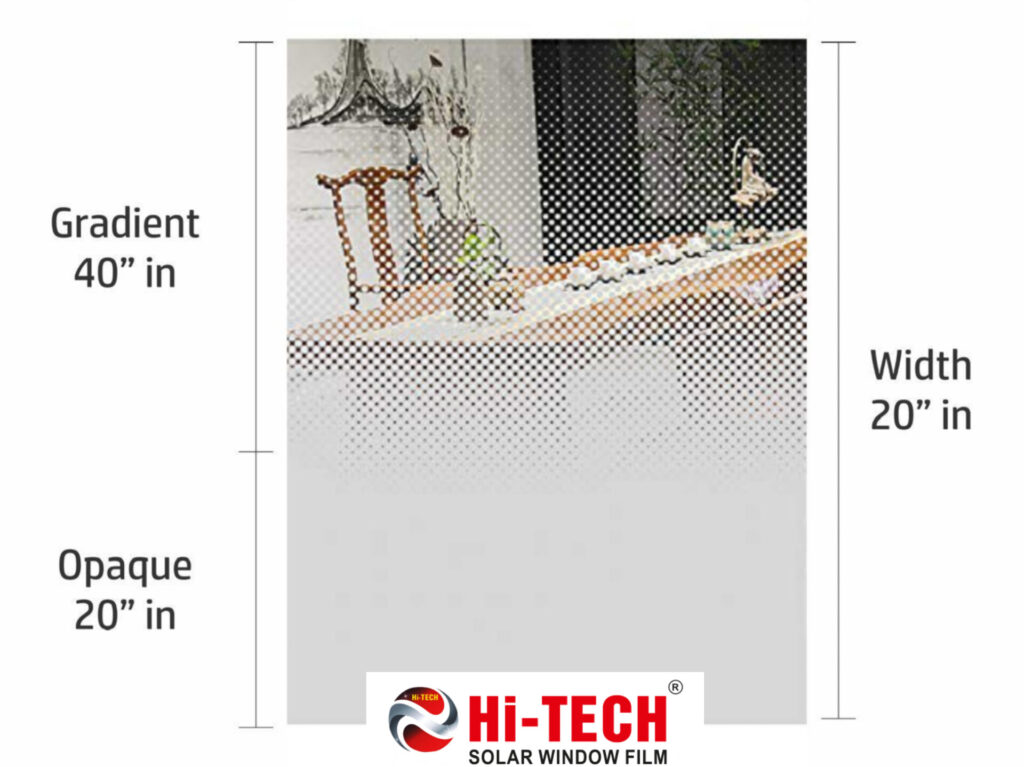 Gradient films are decorative window/glass coverings that offer a smooth, gradual transition from transparent to opaque (or one color to another) to provide customizable privacy, control light, reduce glare, and add modern aesthetic appeal to interiors like partitions, doors, and windows in homes and offices, balancing openness with solitude. Key CharacteristicsOmbré Effect: Features a smooth fade, often from dark to light or fully opaque to clear.Privacy & Light Control: Allows natural light while blocking views, with opacity adjustable from bottom, top, middle, or sides.Versatility: Can be solid colors, patterns, or even custom graphics, and applied to most glass surfaces.Applications: Ideal for office partitions, shower doors, windows, facades, and decorative glass features.Benefits: Enhances aesthetics, reduces glare, offers UV protection, and creates a sophisticated look. Types & VariationsStandard Gradient: Gradual fade from bottom to top for privacy at eye level.Center Gradient: Opaque in the middle, clear at top and bottom, for screening central vision.Custom Gradients: Tailored designs, sizes, colors, and patterns for unique spaces.Laminated: Film is laminated between glass panes for extra strength and safety. Gradient films provide a sleek, functional, and elegant solution for modern glass design, allowing you to define spaces without sacrificing natural light. Are you interested in seeing examples of gradient films in different settings, like offices versus homes, or learning about the installation process?