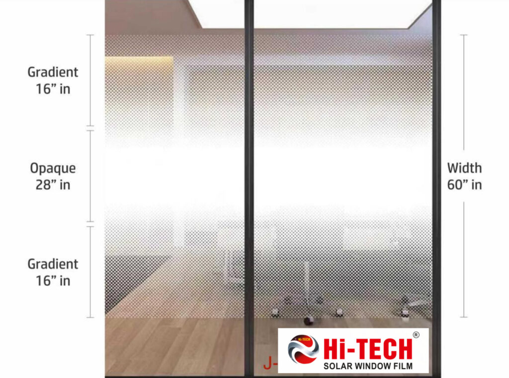 Gradient films are decorative window/glass coverings that offer a smooth, gradual transition from transparent to opaque (or one color to another) to provide customizable privacy, control light, reduce glare, and add modern aesthetic appeal to interiors like partitions, doors, and windows in homes and offices, balancing openness with solitude. Key CharacteristicsOmbré Effect: Features a smooth fade, often from dark to light or fully opaque to clear.Privacy & Light Control: Allows natural light while blocking views, with opacity adjustable from bottom, top, middle, or sides.Versatility: Can be solid colors, patterns, or even custom graphics, and applied to most glass surfaces.Applications: Ideal for office partitions, shower doors, windows, facades, and decorative glass features.Benefits: Enhances aesthetics, reduces glare, offers UV protection, and creates a sophisticated look. Types & VariationsStandard Gradient: Gradual fade from bottom to top for privacy at eye level.Center Gradient: Opaque in the middle, clear at top and bottom, for screening central vision.Custom Gradients: Tailored designs, sizes, colors, and patterns for unique spaces.Laminated: Film is laminated between glass panes for extra strength and safety. Gradient films provide a sleek, functional, and elegant solution for modern glass design, allowing you to define spaces without sacrificing natural light. Are you interested in seeing examples of gradient films in different settings, like offices versus homes, or learning about the installation process?