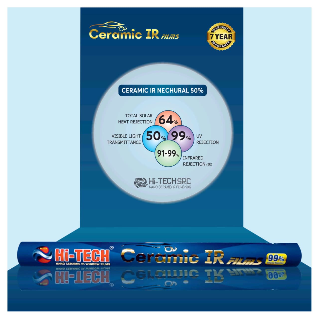 Nano Ceramic IR Window Films (50% VLT) are premium, non-metallized automotive tints featuring ceramic nanoparticles to block over 91% of infrared heat and 99% of UV rays. They provide a neutral, medium-tint look, balancing privacy with high clarity, while ensuring no signal interference for GPS or