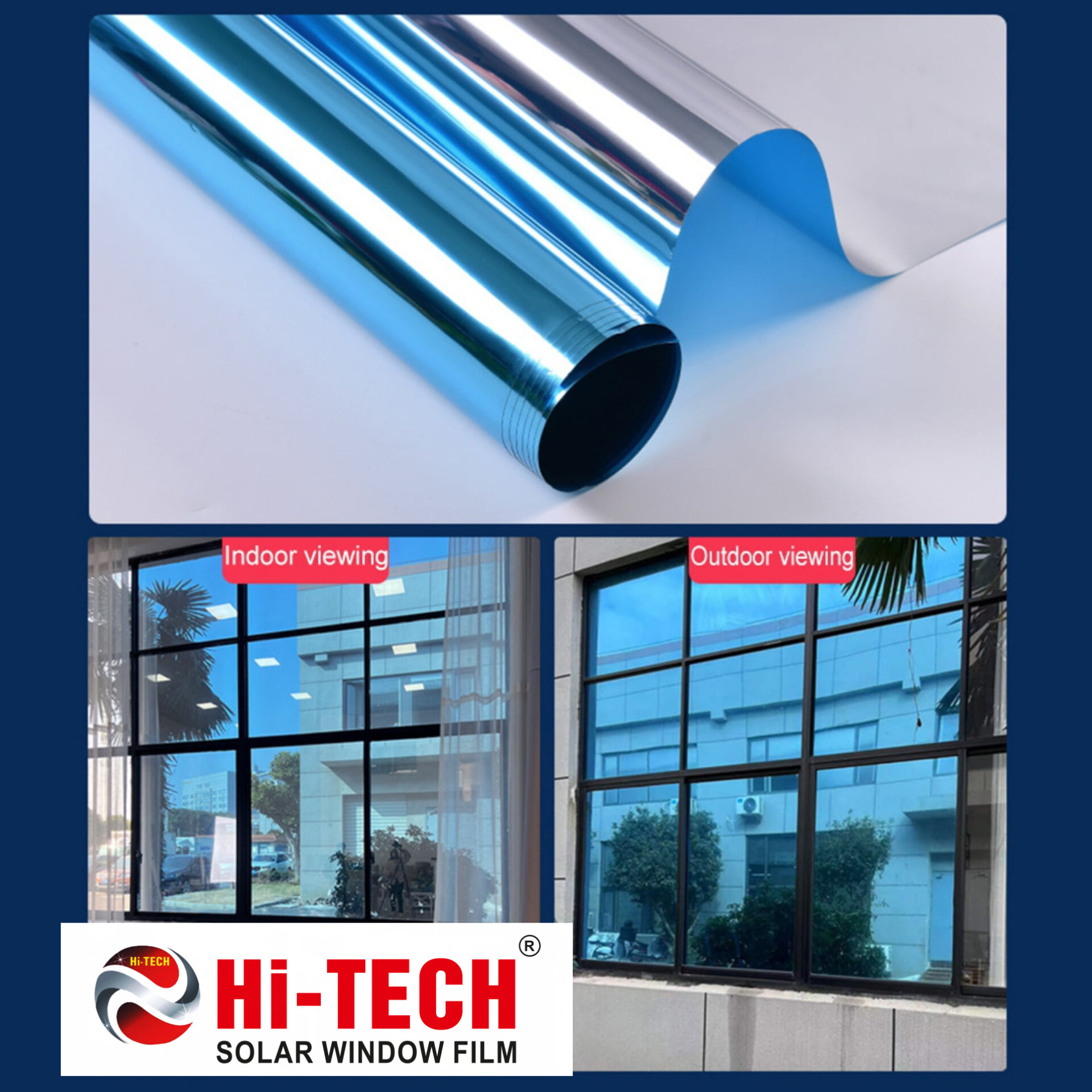 HI-TECH One-way mirror film is a self-adhesive or static-cling reflective window tint that creates daytime privacy by making the exterior glass look like a mirror while maintaining a clear view from the inside. It effectively reduces heat, UV rays, and glare, making it ideal for homes and offices. It works best when the exterior is brighter than the interior.